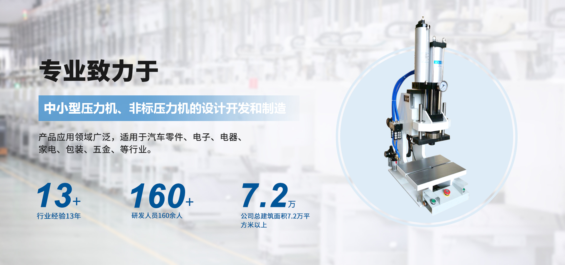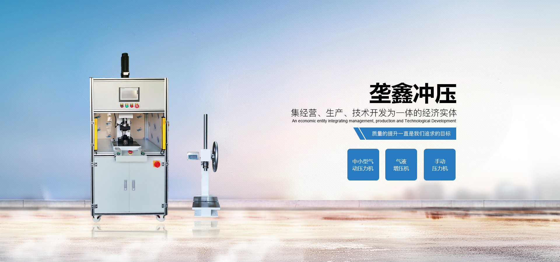 煙臺(tái)壟鑫沖壓設(shè)備有限公司是集經(jīng)營(yíng)、生產(chǎn)、技術(shù)開(kāi)發(fā)為一體的經(jīng)濟(jì)實(shí)體,專(zhuān)業(yè)致力于中小型壓力機(jī)、非標(biāo)壓力機(jī)的設(shè)計(jì)開(kāi)發(fā)和制造。在引進(jìn)德國(guó)、日本等國(guó)家先進(jìn)的鉚壓控制技術(shù)及機(jī)器設(shè)計(jì)理念的基礎(chǔ)上,結(jié)合相關(guān)行業(yè)的實(shí)際需要,開(kāi)發(fā)出各種臺(tái)式、落地式氣動(dòng)壓力機(jī)、手動(dòng)壓力機(jī)、氣液增壓機(jī)、氣液增力缸、旋鉚機(jī)、無(wú)鉚釘鉚接機(jī)等鉚接設(shè)備。產(chǎn)品應(yīng)用領(lǐng)域廣泛,適用于汽車(chē)零件、電子、電器、家電、包裝、五金、等行業(yè)。公司視質(zhì)量為生命,并一貫遵循對(duì)每一臺(tái)產(chǎn)品負(fù)責(zé),對(duì)每一位用戶負(fù)責(zé),真誠(chéng)為您服務(wù)。 自公司成立以來(lái),秉承“誠(chéng)信,創(chuàng)新,專(zhuān)業(yè)”的經(jīng)營(yíng)理念,以優(yōu)質(zhì)的產(chǎn)品,完善的售后服務(wù),樹(shù)立良好的品牌形象,服務(wù)于廣大新老顧客。我們竭誠(chéng)于各位同仁攜手并進(jìn),共謀發(fā)展。